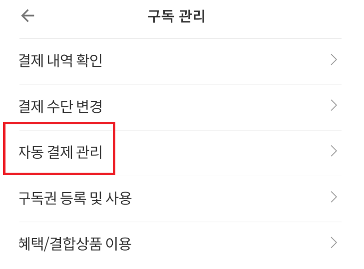 여기서 '자동결제 관리'를 선택해 주시기 바랍니다.