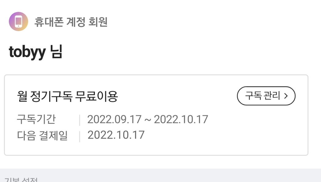 그러면 휴대폰 계정 회원 정보가 나오게 됩니다.