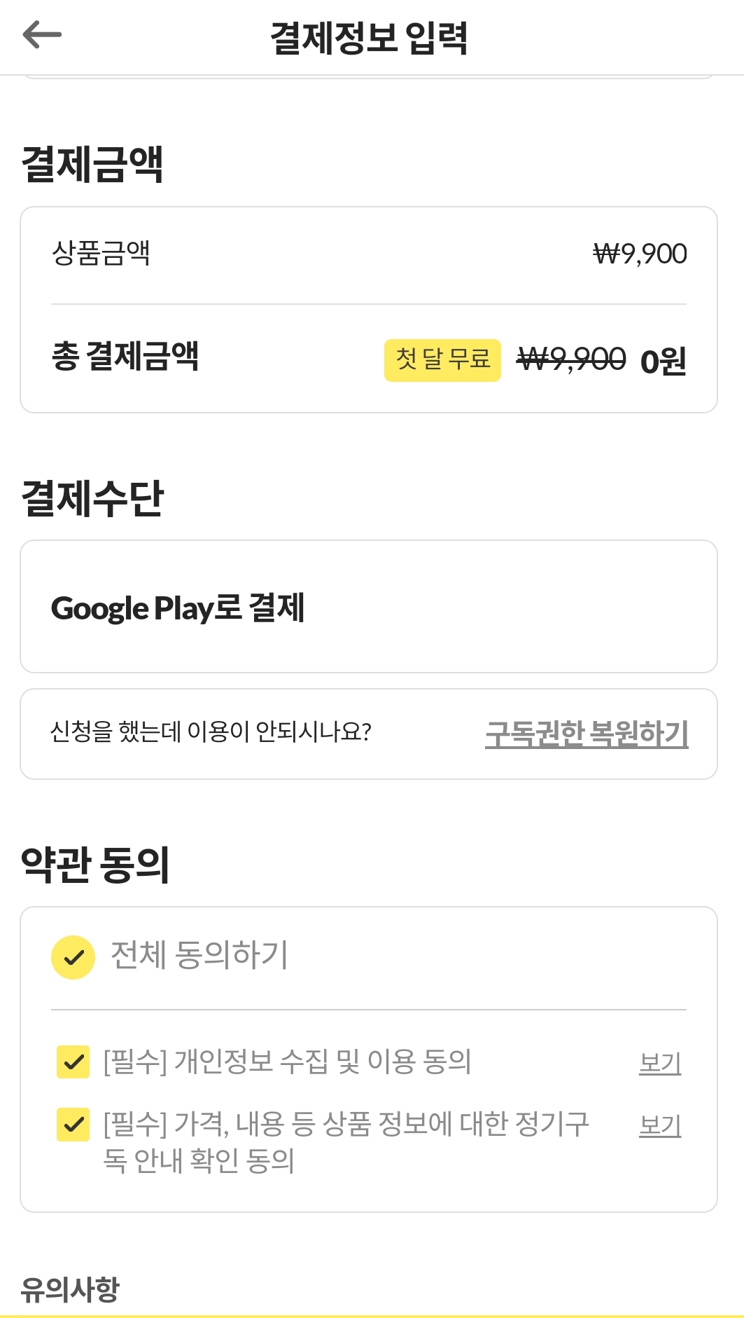 정기 결제 재개가 가능하오니 참고해 주세요.