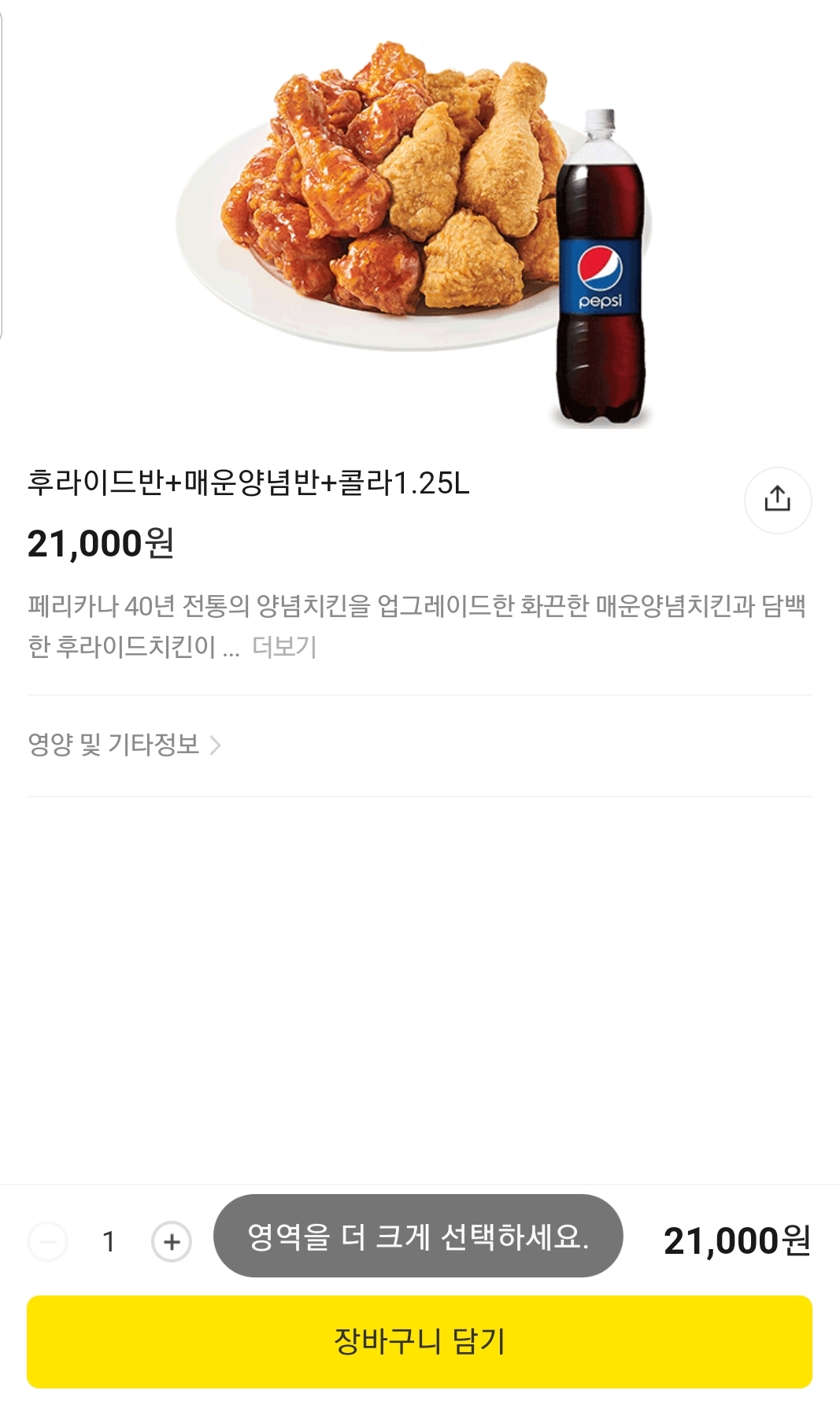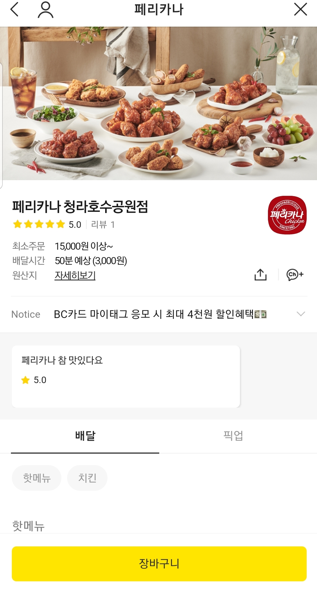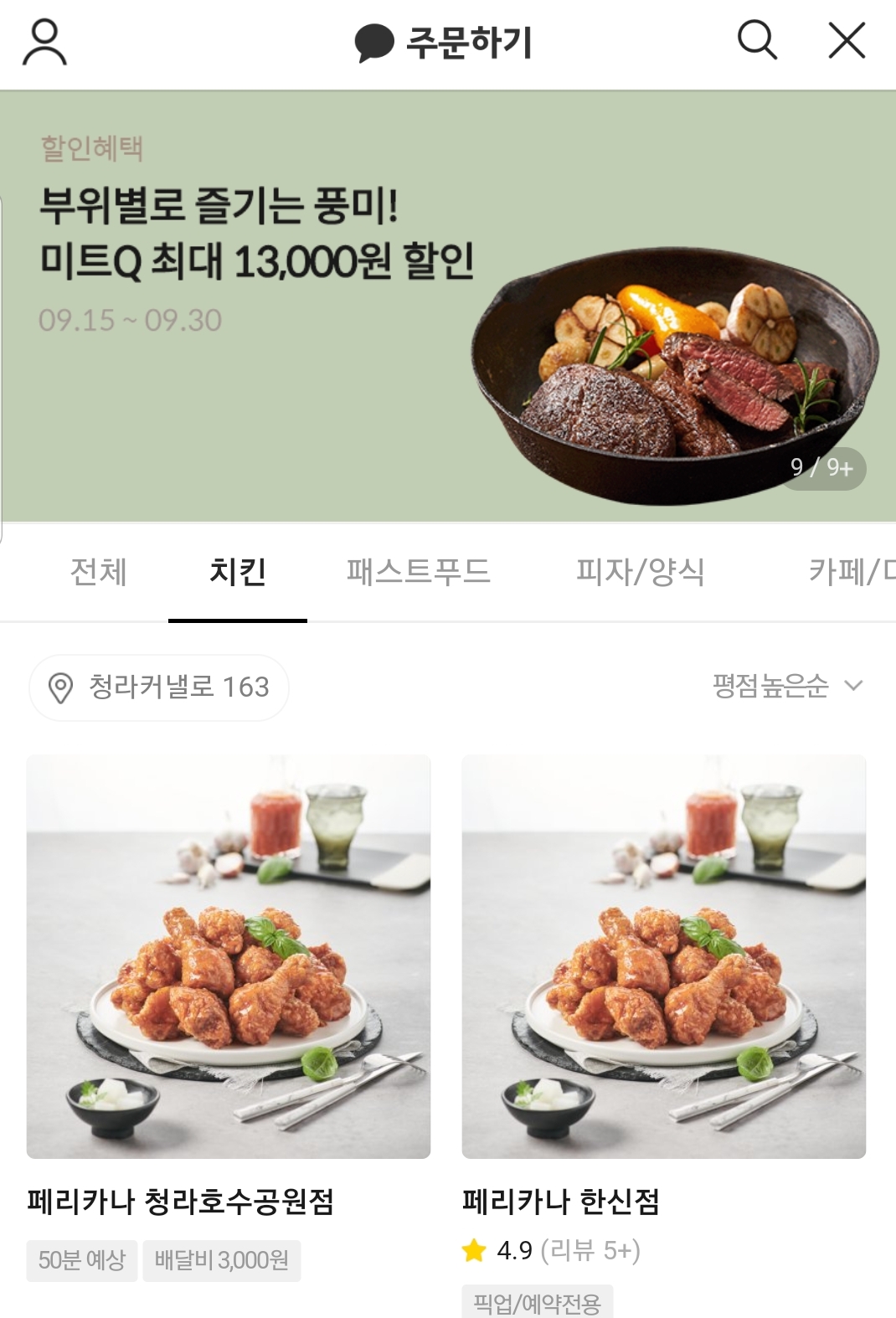 그럼 아래와 같이 치킨을 한번 시켜보도록 하겠습니다.