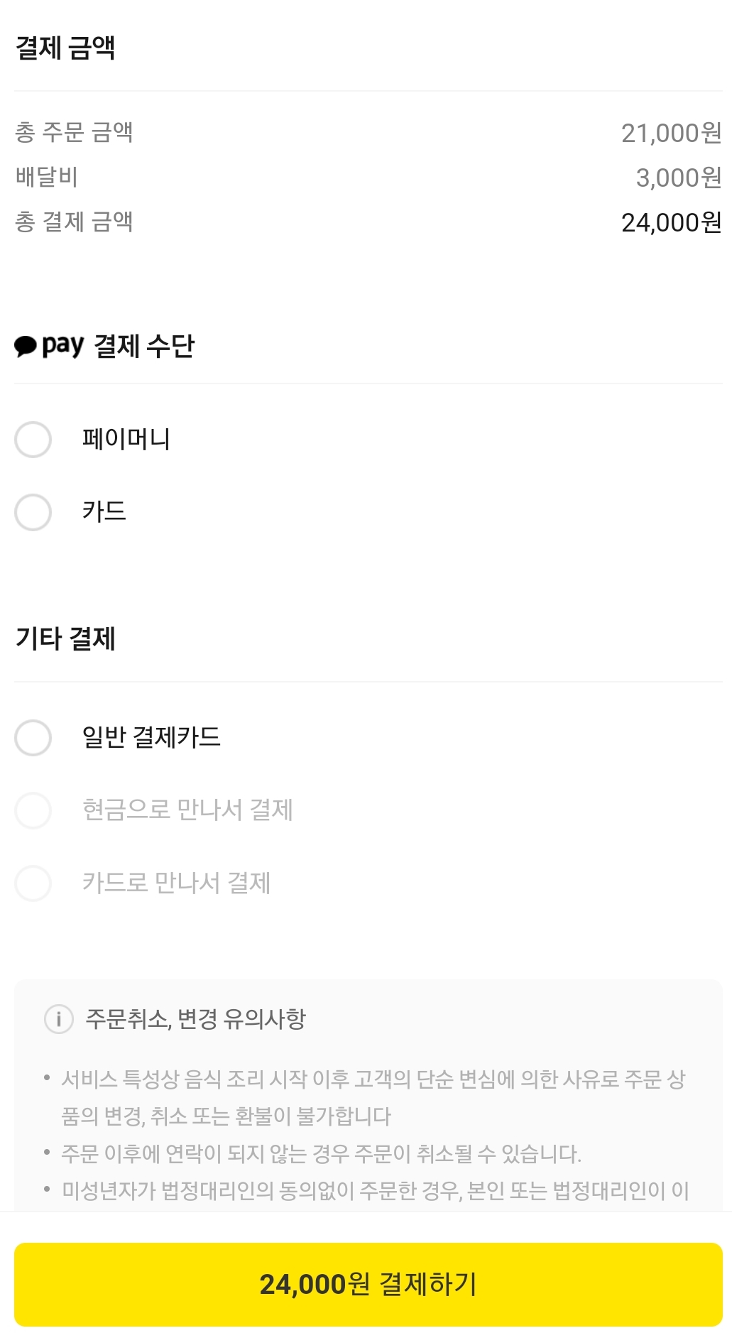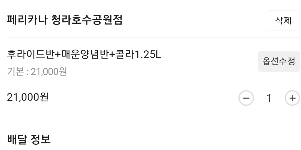 결재금액과 배달비가 아래와 같이 나오고 있는것을 확인하실 수 있습니다.