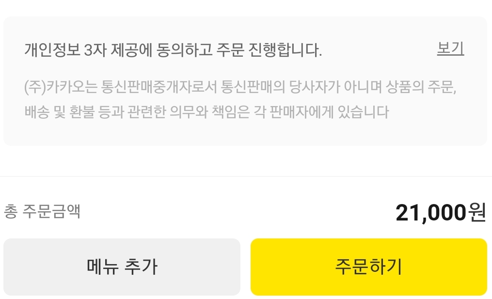 그러면 아래와 같이 카카오톡 주문하기 나오게 됩니다.