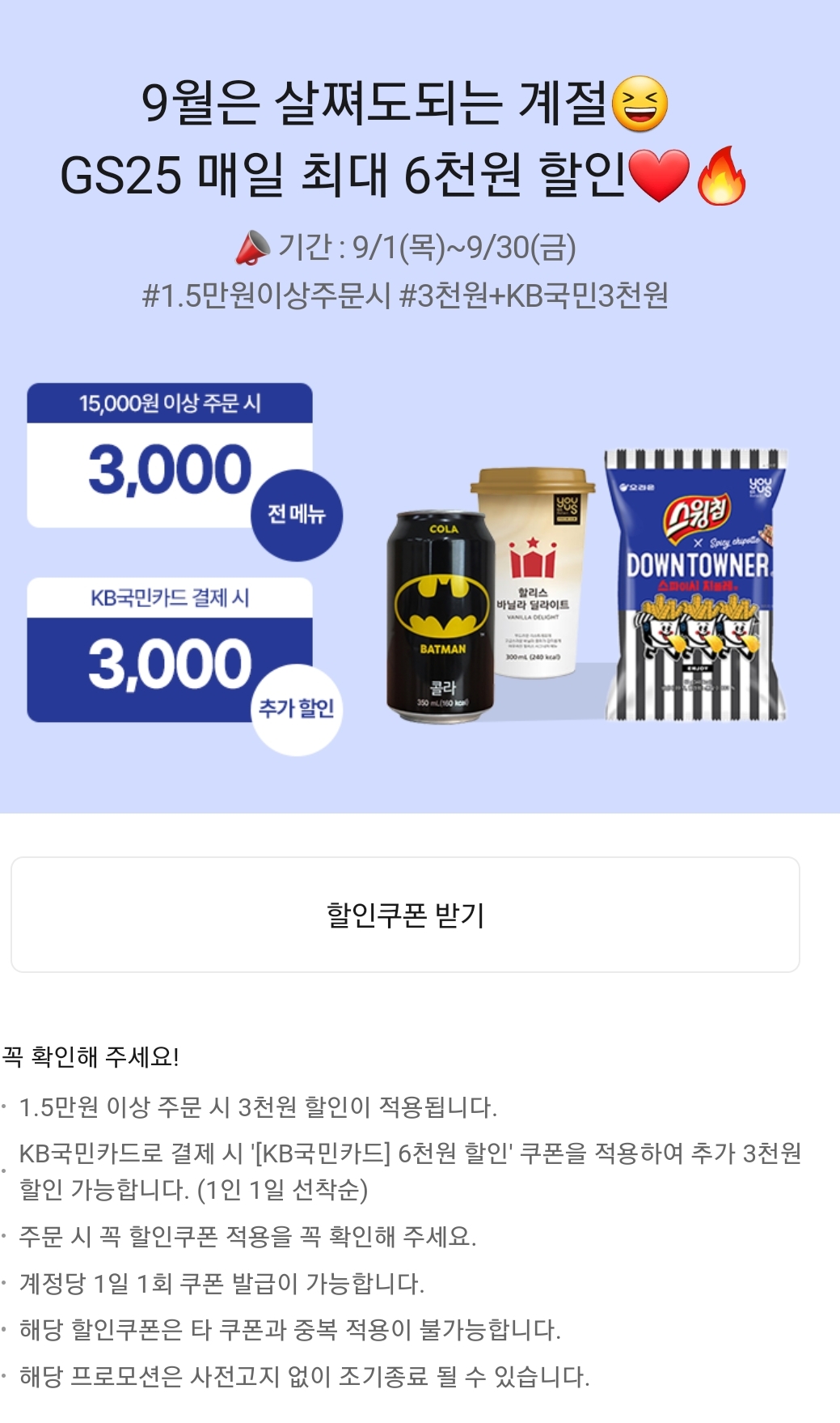 GS 주문혜택도 최대 6천원 할인 쿠폰이 나오고 있네요.