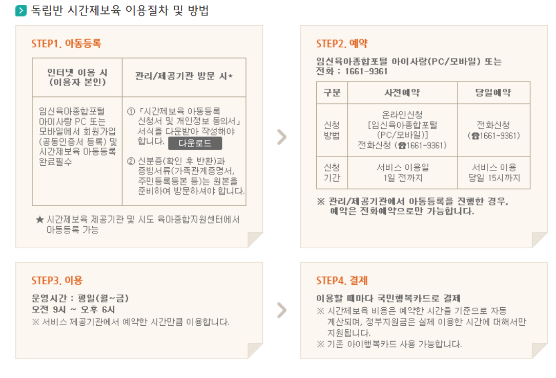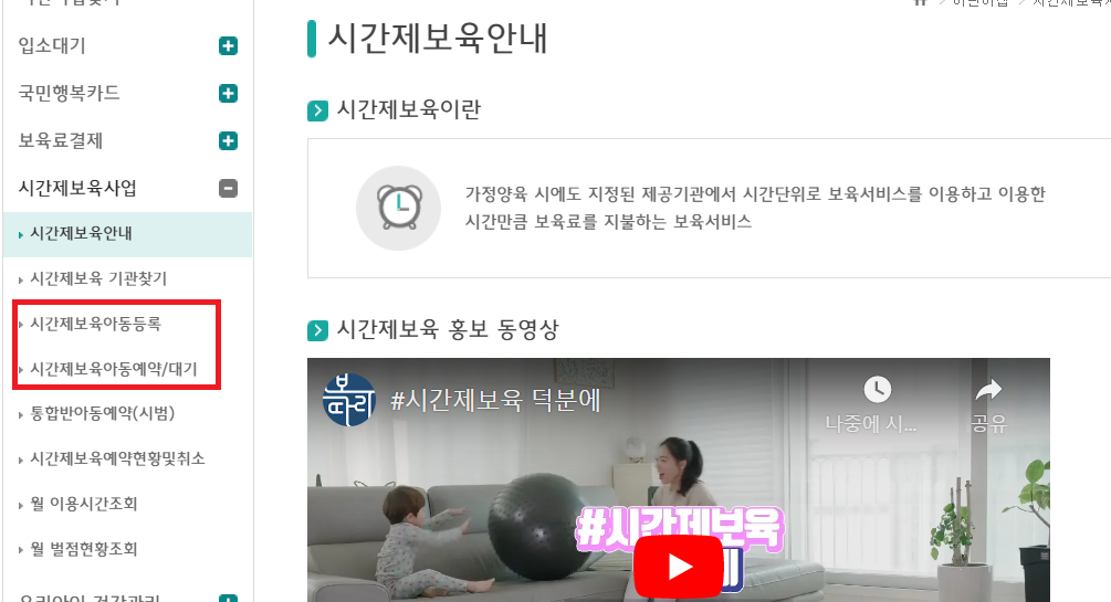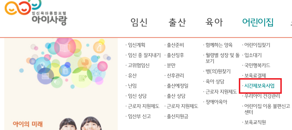 시간제보육 서비스는 아이사랑 홈페이지에서 신청이 가능합니다.