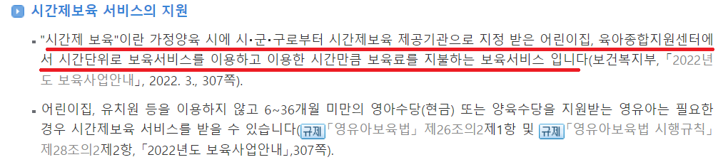 시간제보육이란 지정된 제공기관에서 아이를 시간단위로 맡기고,