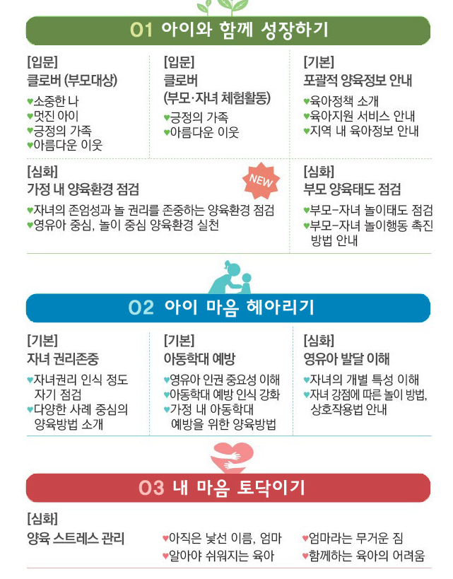 이곳에서는 양육에 대한 정보를 제공받을 수 있으며 부모교육 및 부모상담도 가능한 곳입니다.