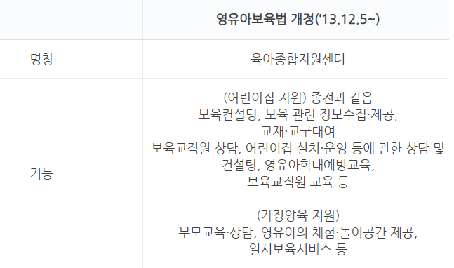 아래는 육아종합지원센터의 기능을 좀 자세히 나타낸 표입니다.