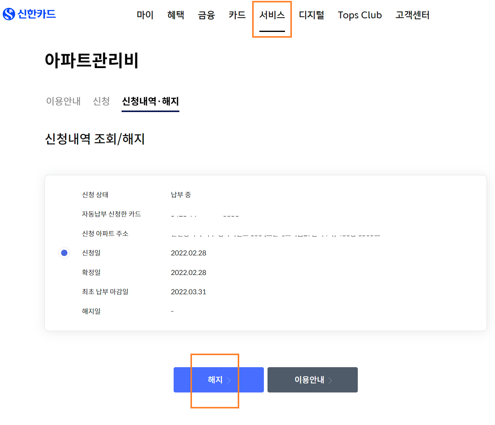 먼저 저는 아파트 관리비를 해지해 보도록 하겠습니다.
