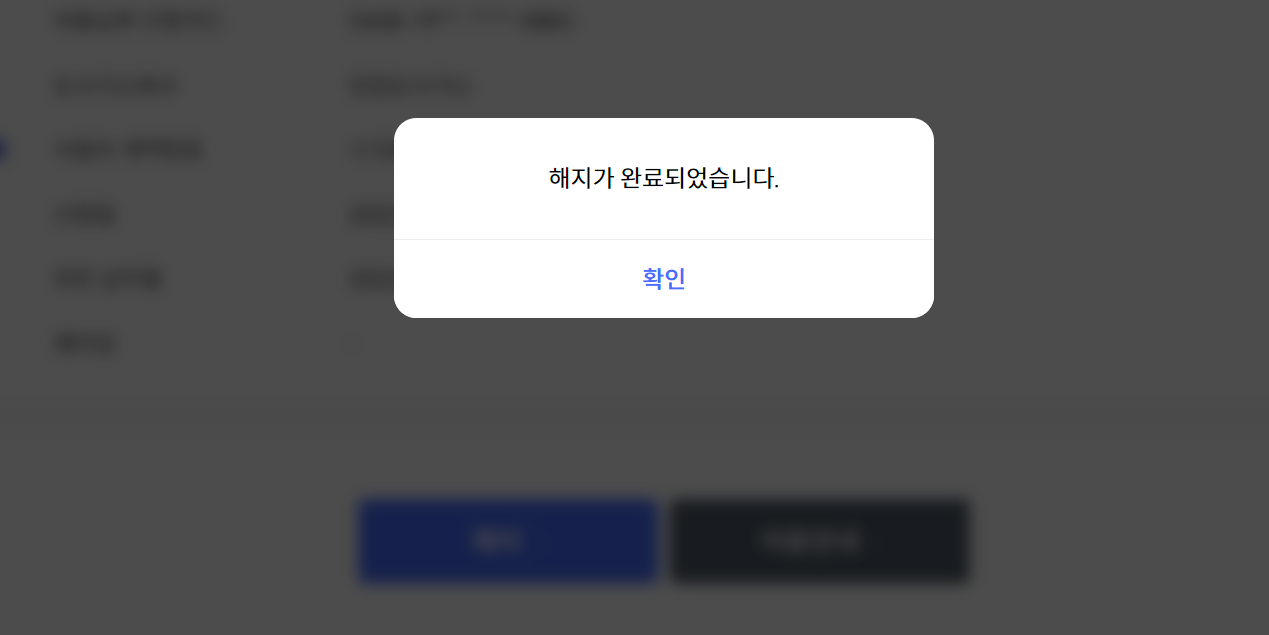 이제 '해지'를 선택해 보도록 하겠습니다.
