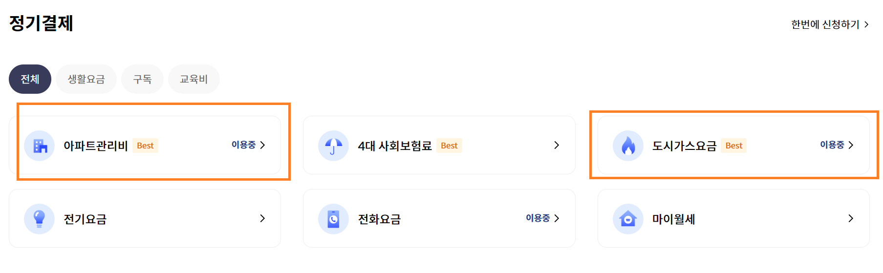 저 같은 경우에는 아파트관리비와 도시가스 요금을 정기적으로 납부하고 있습니다.