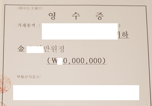 아래와 같이 계약금 지급에 대한 영수증을 받게 됩니다.