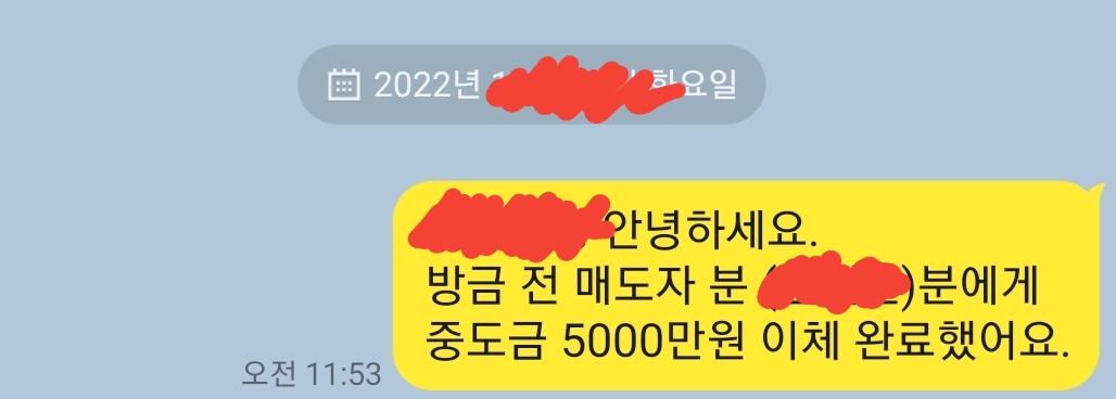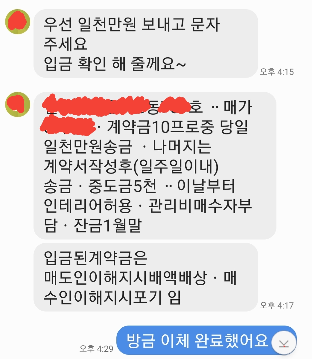 1000만원 가계약금 + 4000만원 계약서 쓰는날 송금