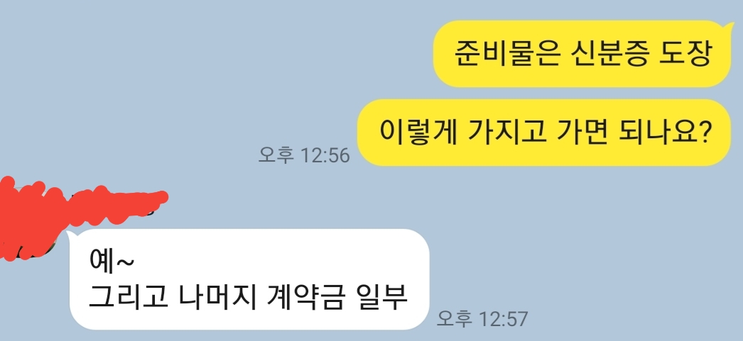 준비물은 신분증, 도장, 계약금 일부 (위의 예시에서 4000만원)를 가지고 갑니다.