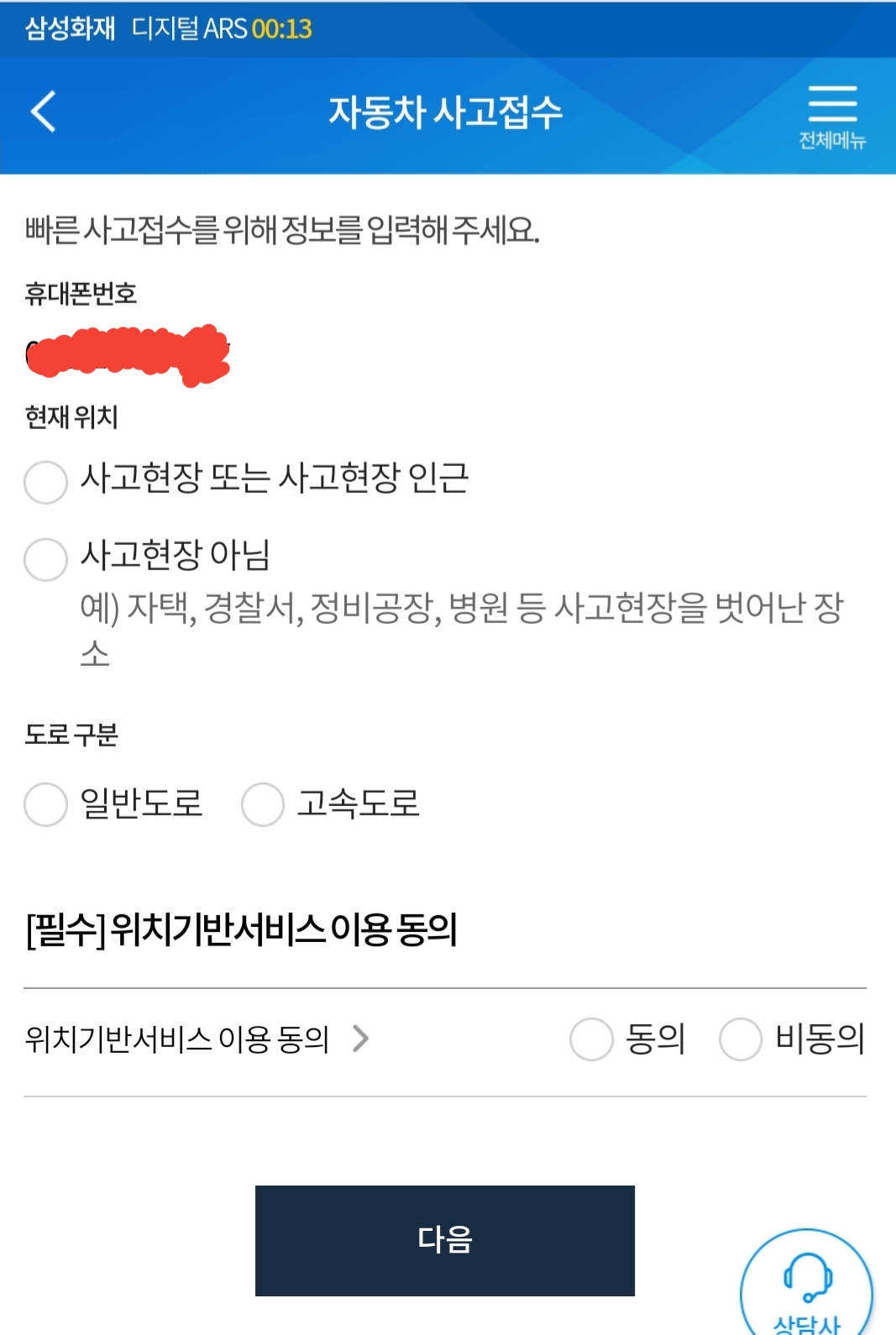 저 같은 경우는 '자동차 사고접수'를 눌렀습니다.