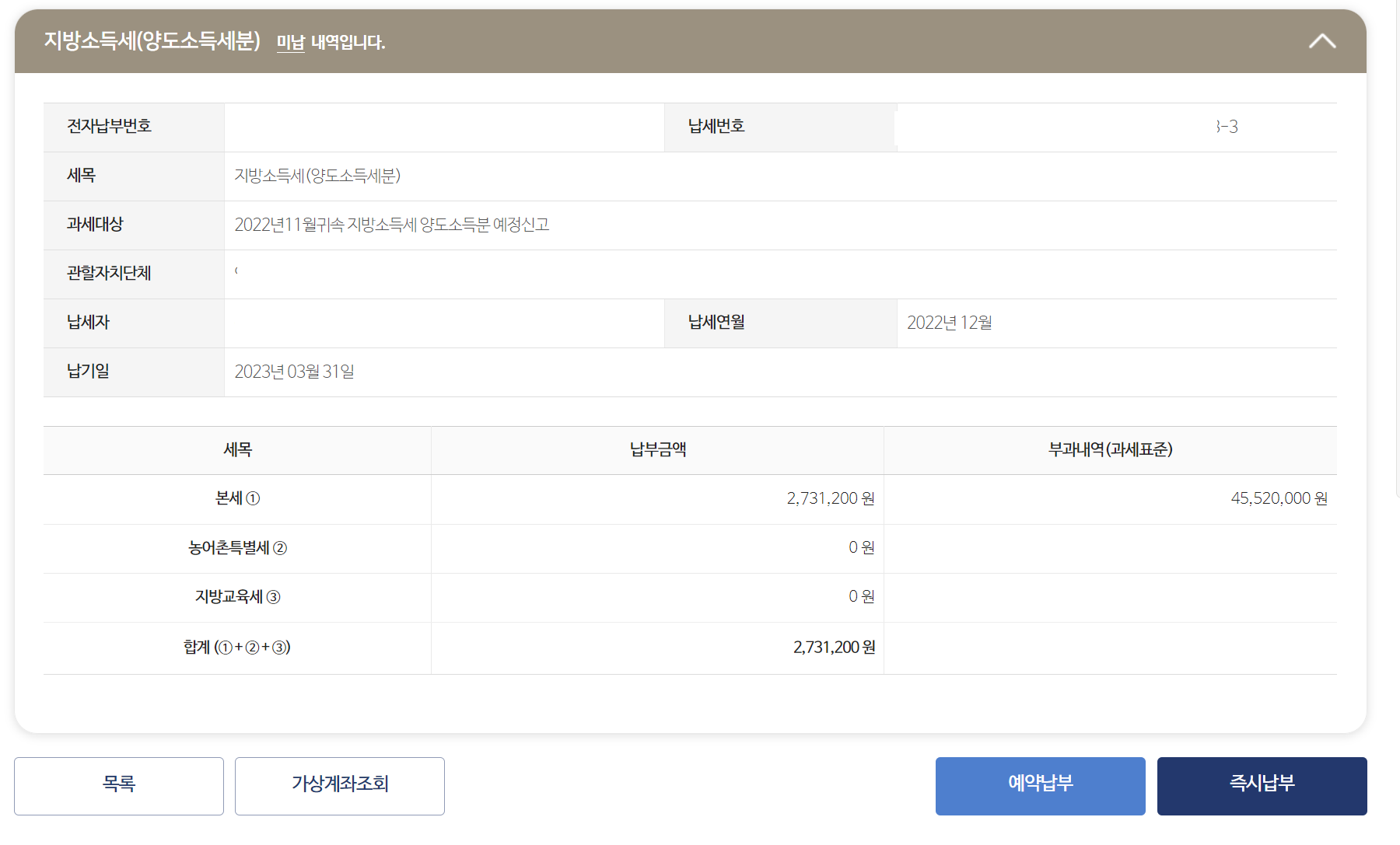 2) 지방세 10%를 납부하기 위해서 위택스에서 추가 신고를 하셔야 합니다.