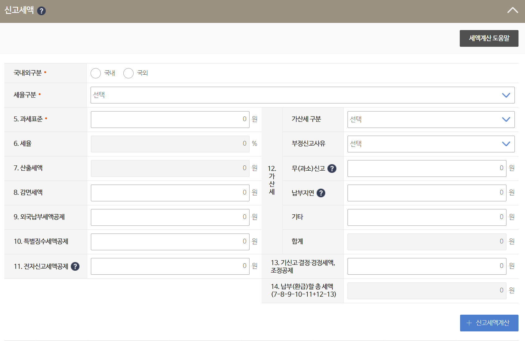신고는 홈택스와 동일한 값을 입력하였습니다.