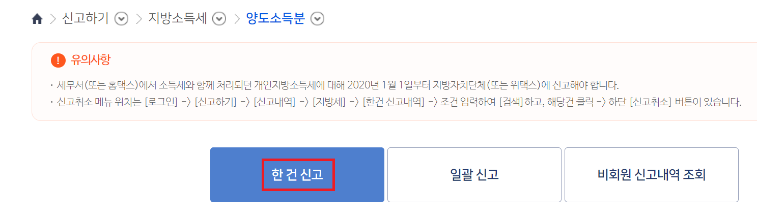 그리고 아래와 같이 한건 신고를 선택해 주시기 바랍니다.