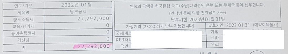 온라인 신고로 2만원을 할인 받아서 최종적으로 27,292,000원을 납부하게 되었습니다.