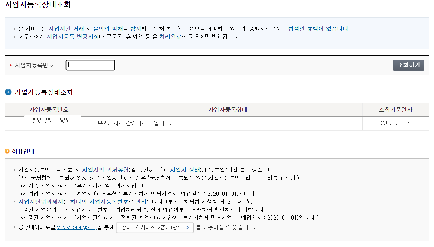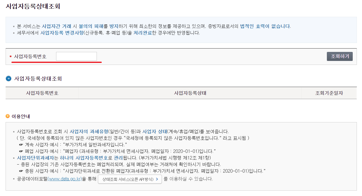 그러면 먼저 사업자등록번호로 조회하는 방법을 확인해 보도록 하겠습니다.