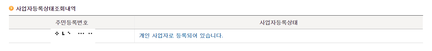 그러면 아래와 같이 개인 사업자로 등록이 되어 있는 것을 확인 할 수 있습니다.