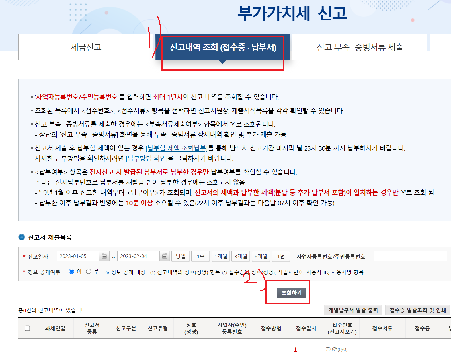 그리고 아래와 같이 신고내역 조회를 수행하고