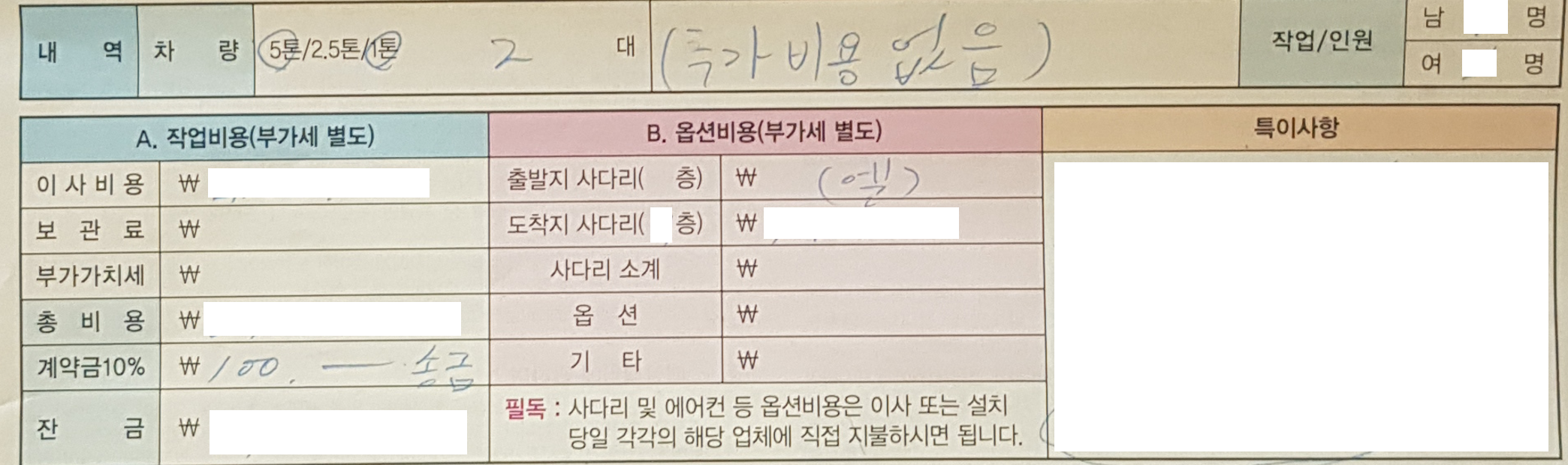 아파트 이사비용 견적 정리 (34평 이파트 파란이사 영구이사 비용 비교)