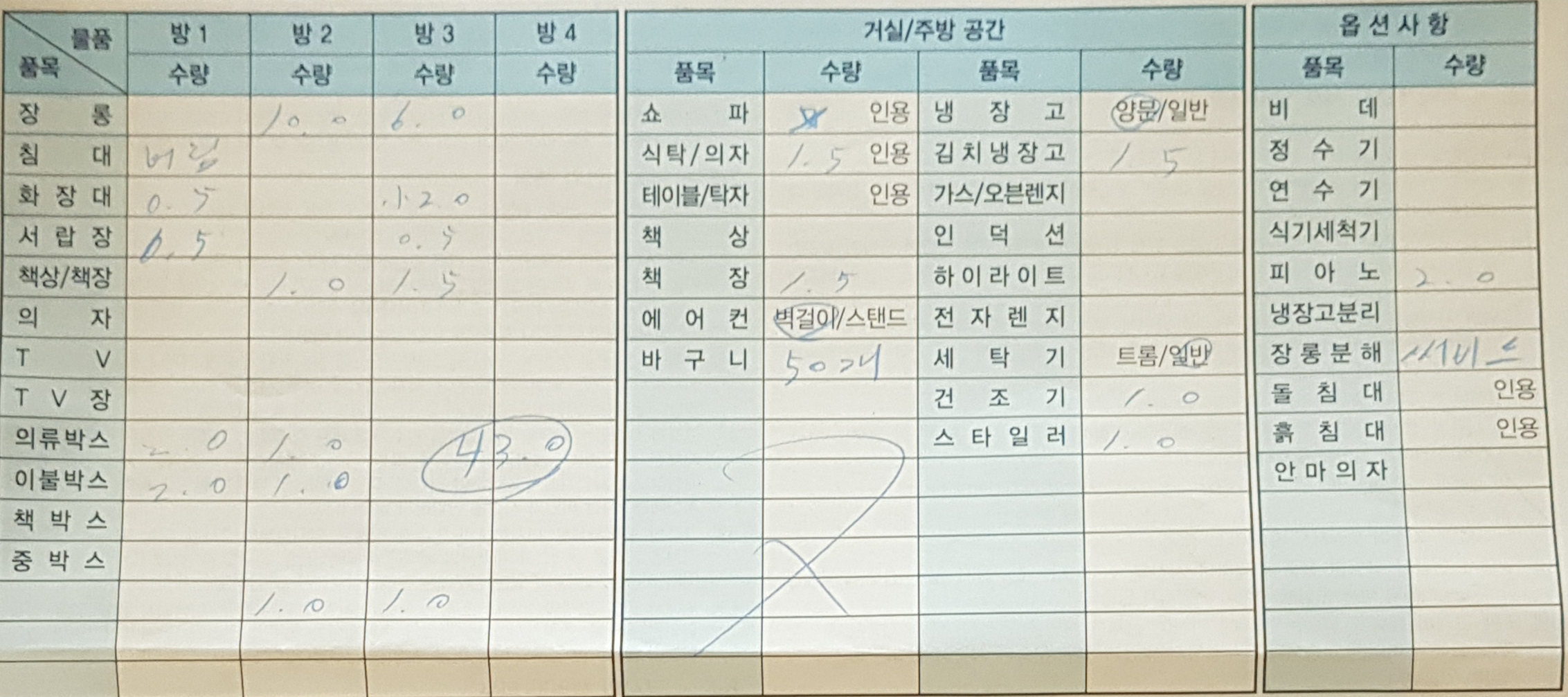 이사할 큼직한 짐들을 다 보면서 차량의 톤수와 개수를 정하기 때문에