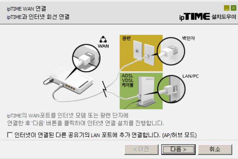 위의 인터넷 라인을 무선 공유기에 연결합니다.