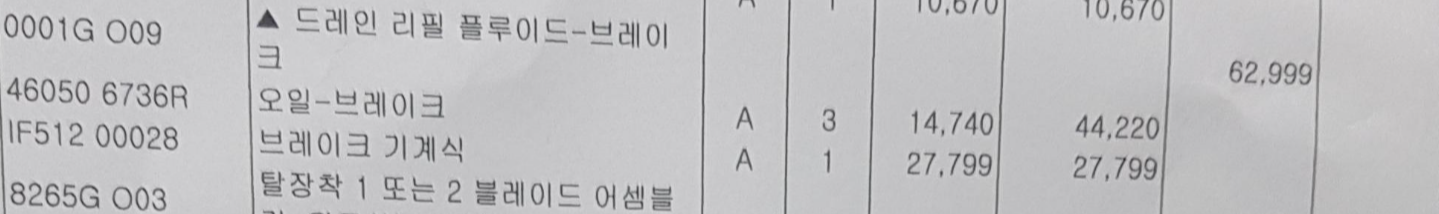 브레이크 오일과 할로겐 헤드램프 그리고 와이퍼를 갈았습니다.