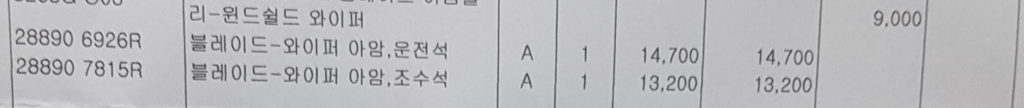 마지막으로 와이퍼 교체 비용을 알아 보도록 하겠습니다.