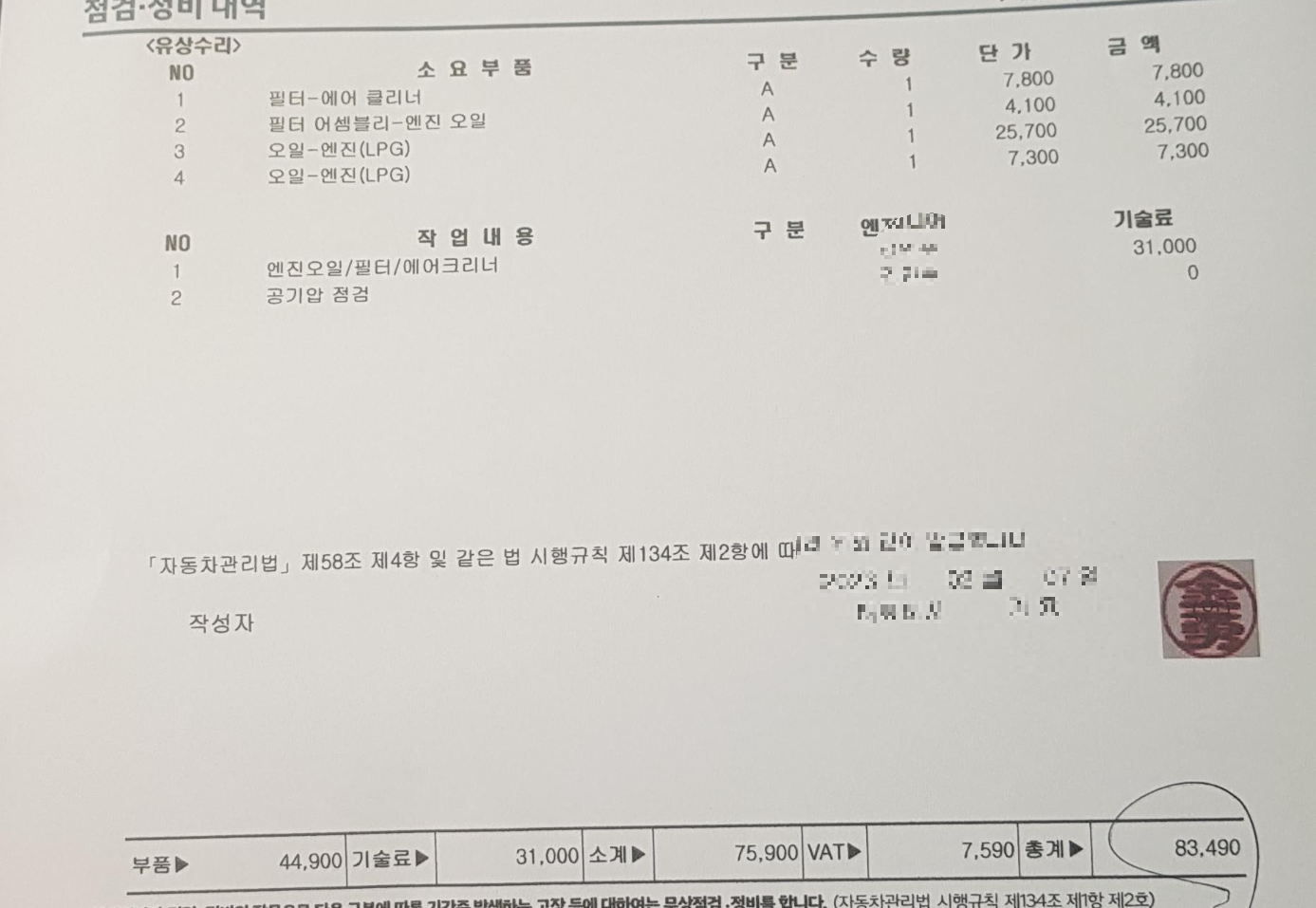 소나타 엔진오일 교체 비용은 대략적으로