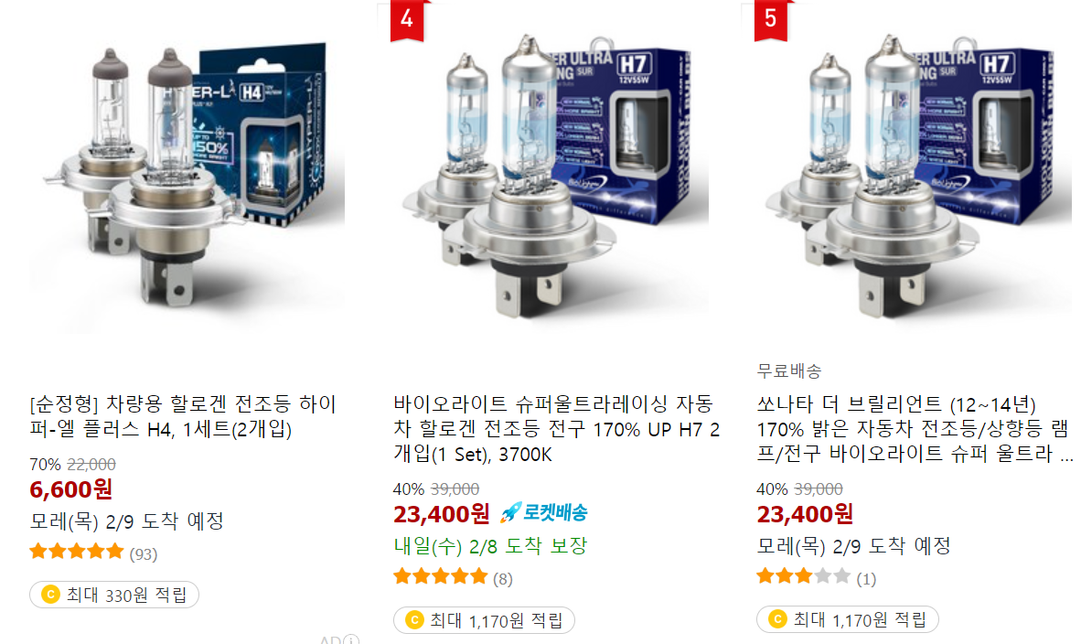 1. 소나타 헤드램프 교체 비용