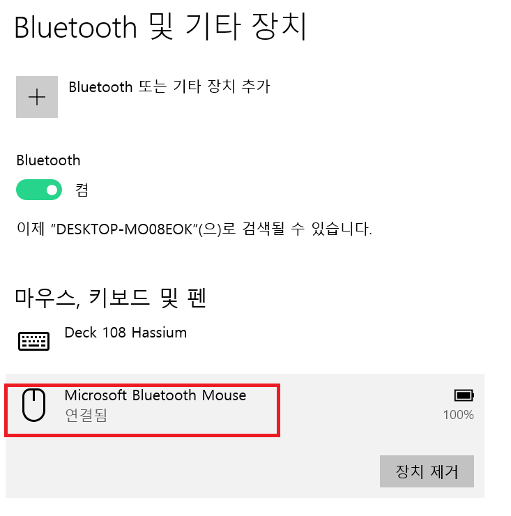 이때 블루투스 마우스에 전원이 켜져 있어야 합니다.