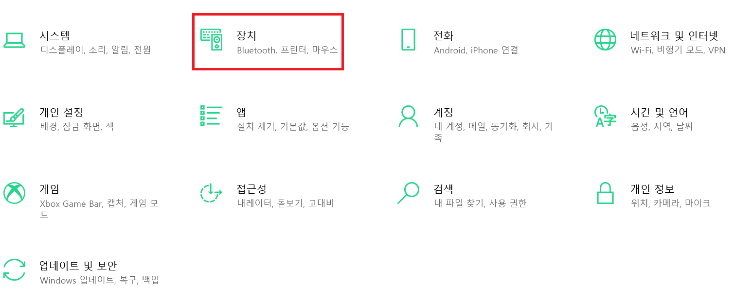2. window에서 시스템-> 장치를 선택해 주세요.