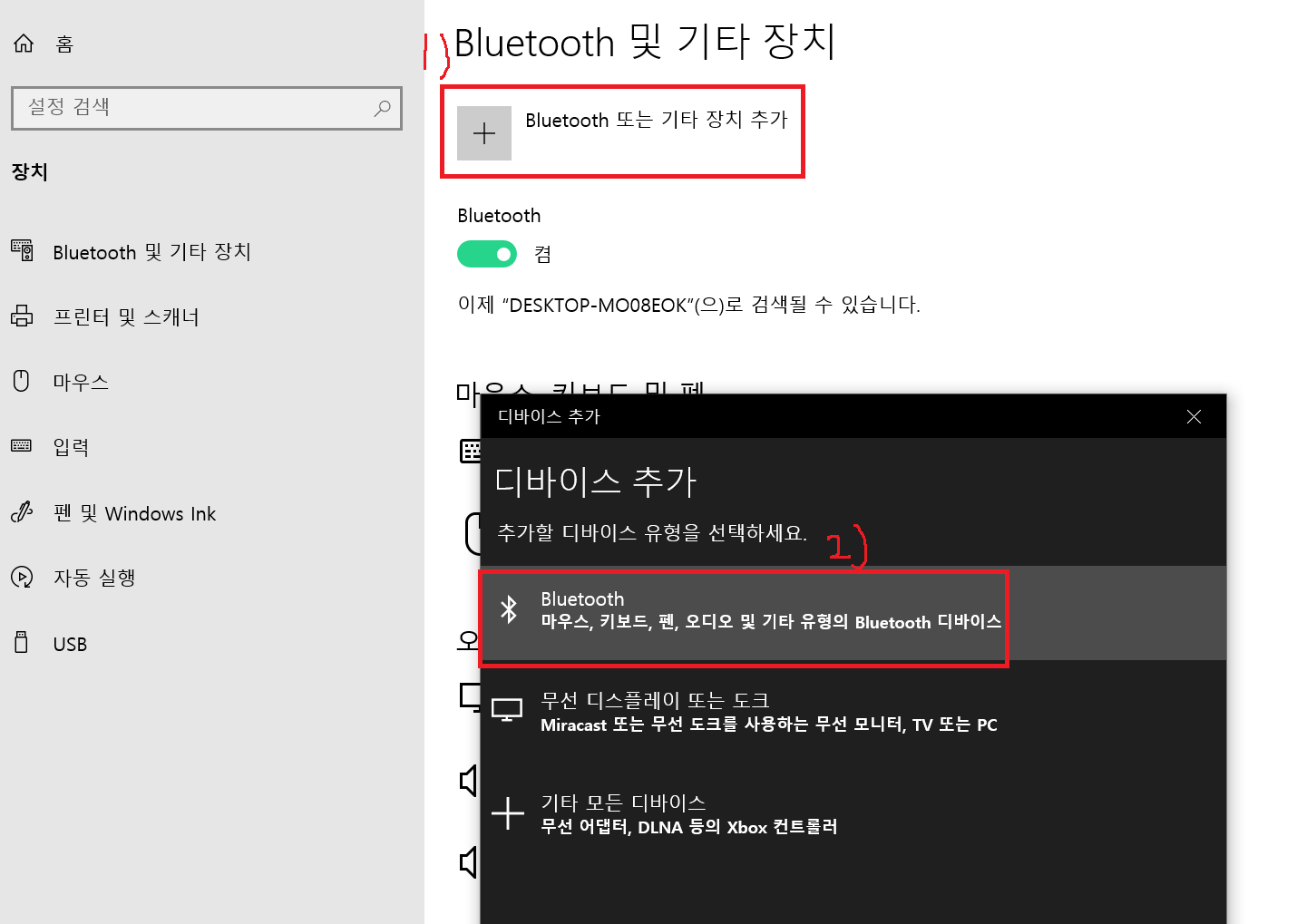 데스크탑에서 블루투스 마우스를 사용하는 방법입니다.