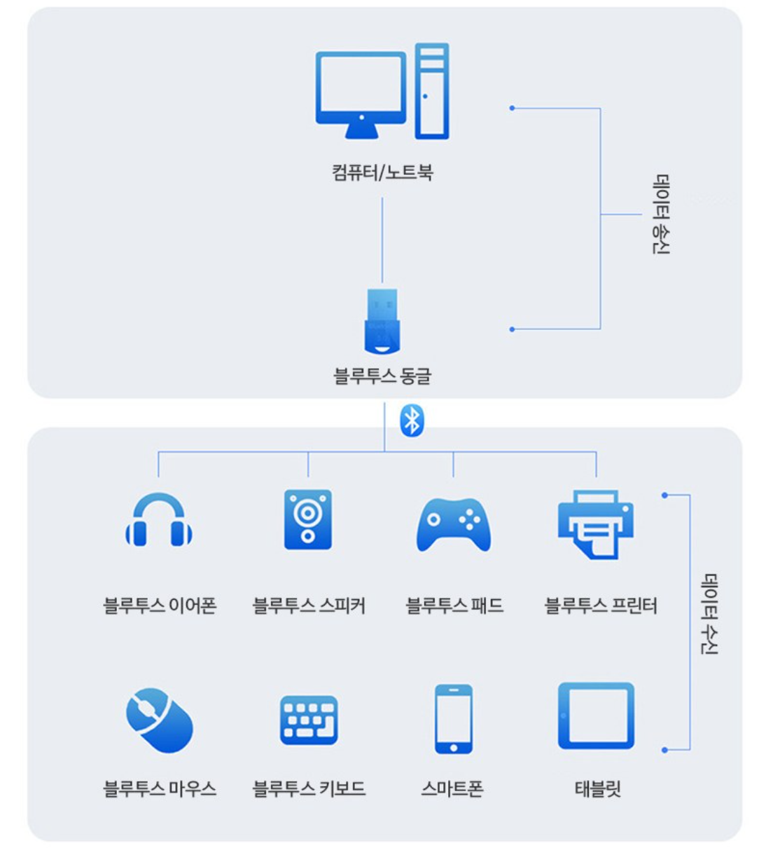 보통 노트북, 핸드폰에는 이미 블루투스 송수신기가 내장이 되어 있습니다.