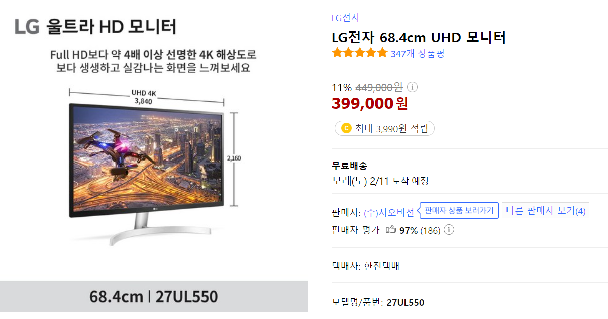 가격은 쿠팡에서 아래와 같이 399,000원 이며