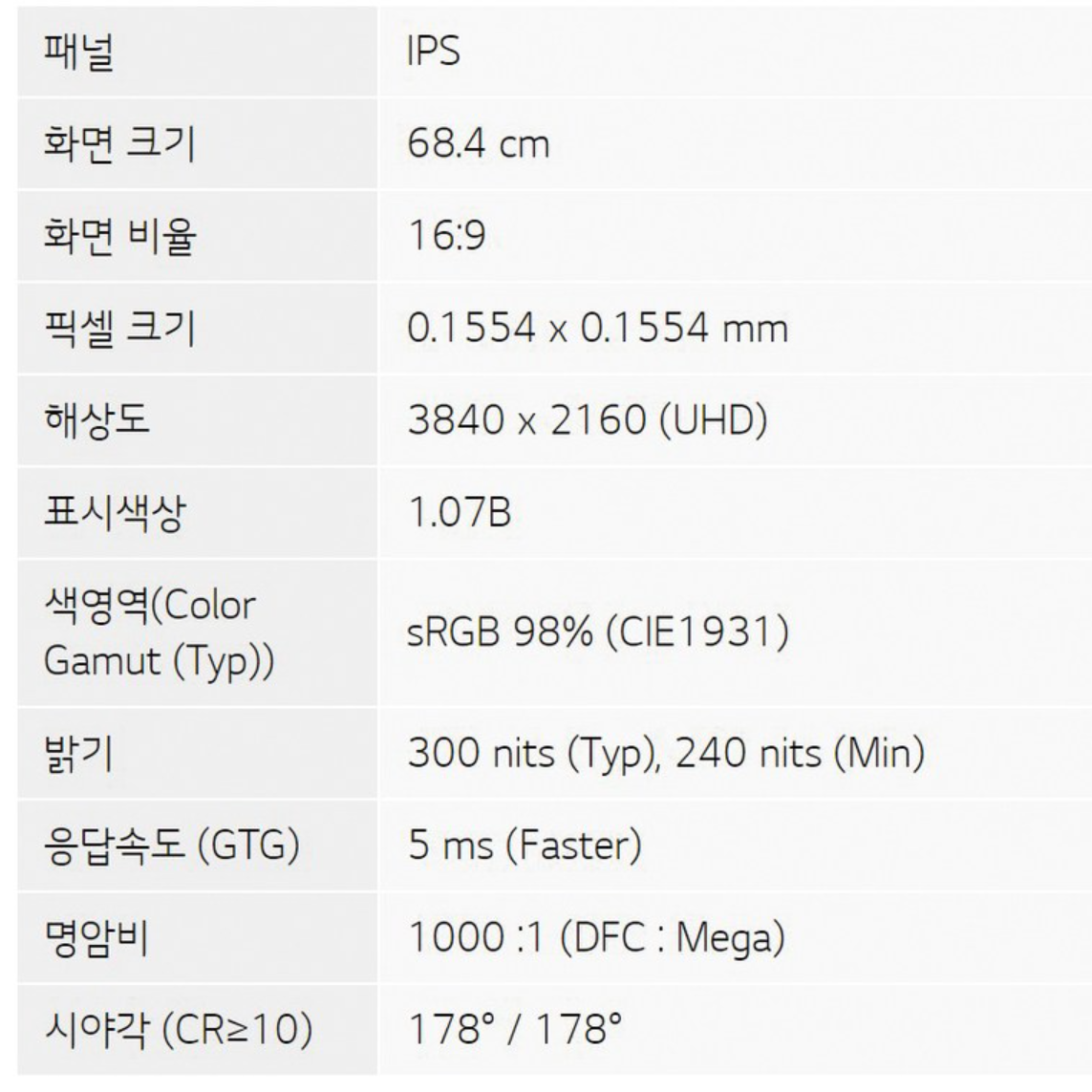 마지막으로 모니터 스펙을 아래와 같이 올립니다.