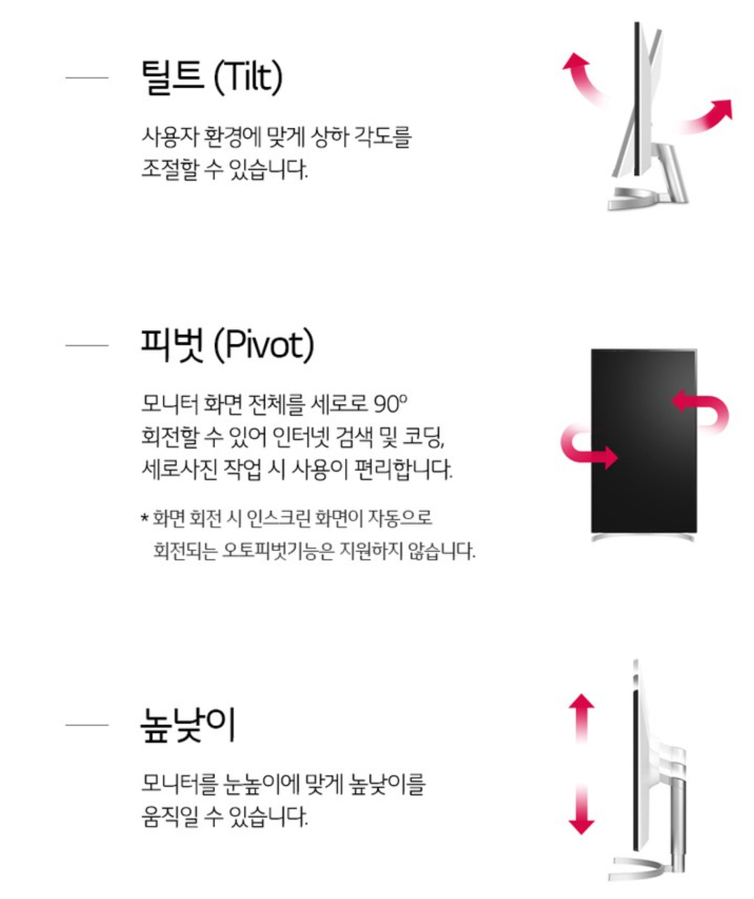 사실 이 모니터는 90도 회전(피벗)만 가능한것이 아니라