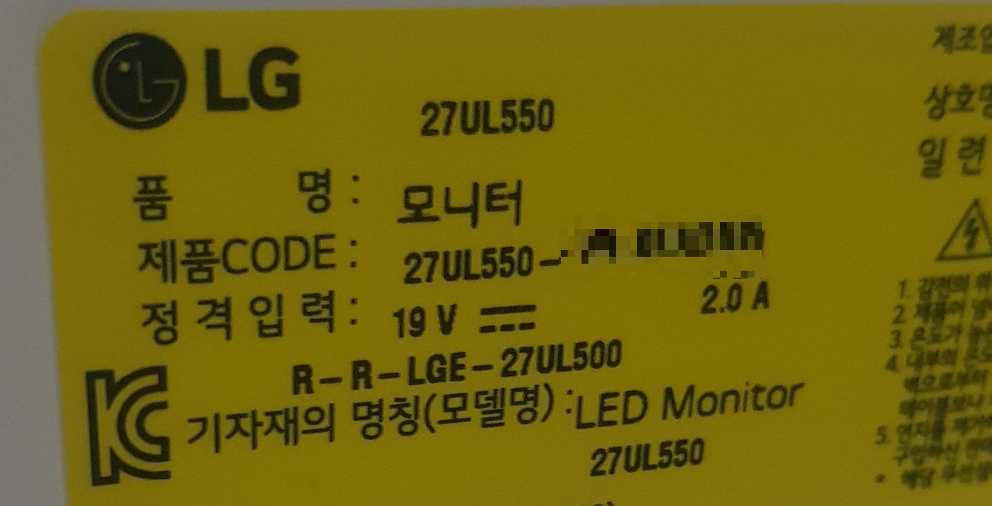 뒷면의 27UL550에 대해서 조금더 자세히 한번 사진을 찍어보았습니다.