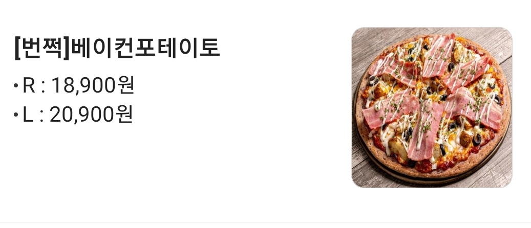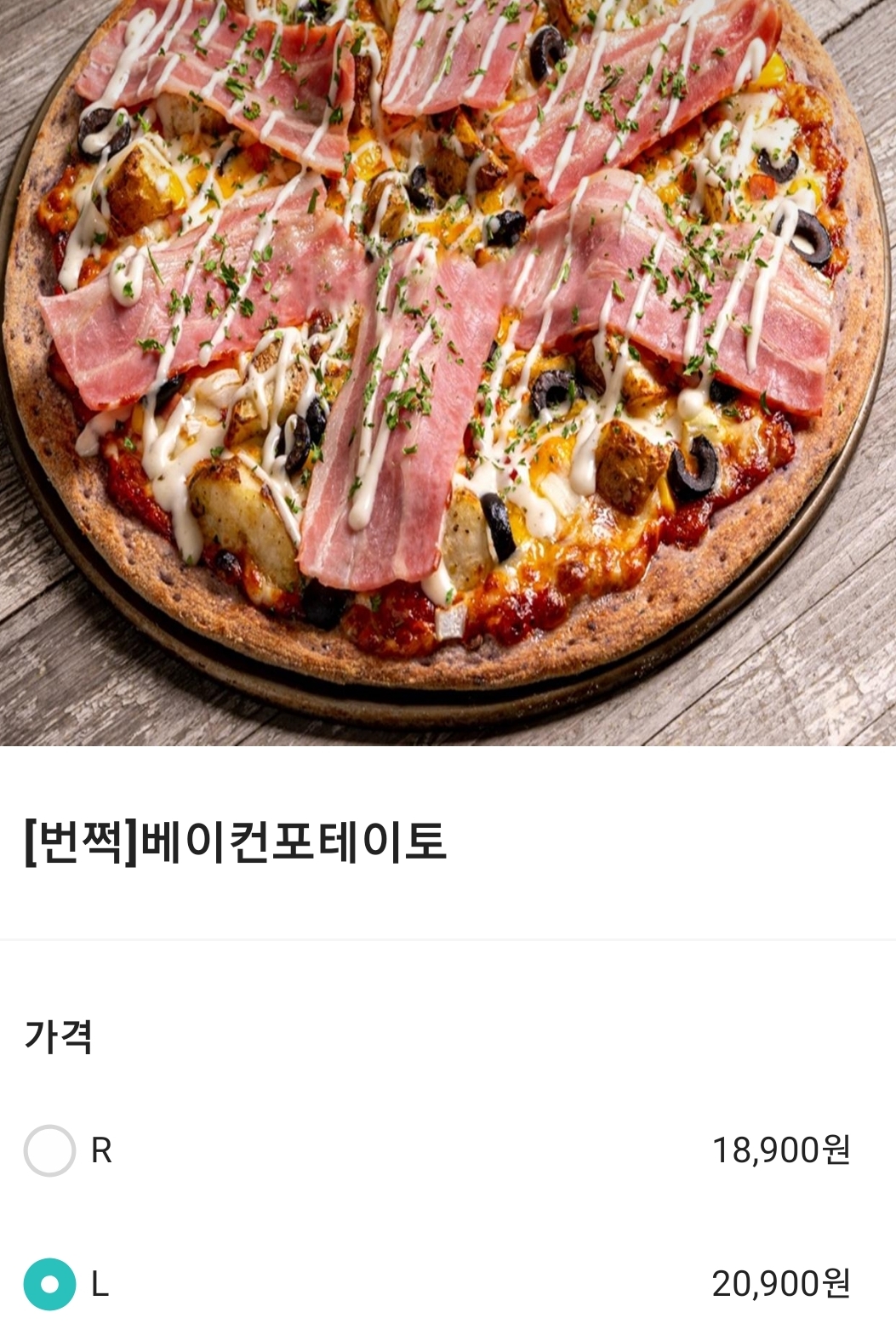 그리고 아래와 같이 베이컨 포테이토 피자를 라지로 시켰고