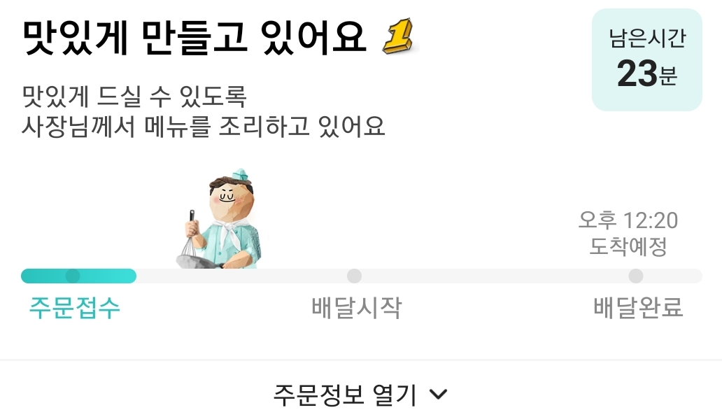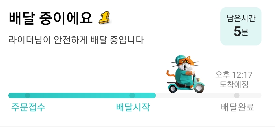 위와 같이 배달까지 남은시간을 실시간으로 볼 수도 있고