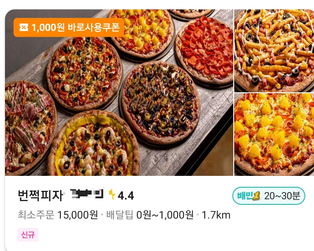 따라서 배민1에서 번쩍피자를 시켰습니다.