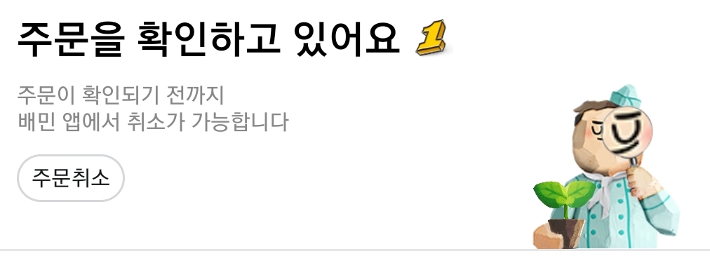 아래는 배민1을 이용하여 배달을 시킬때의 핸드폰에서 볼 수 있는 창입니다.