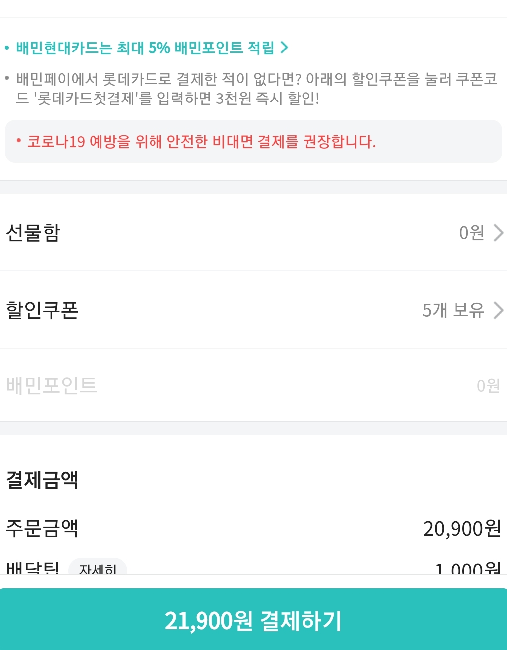 금액은 최종적으로 21,900원 나오게 되었습니다.