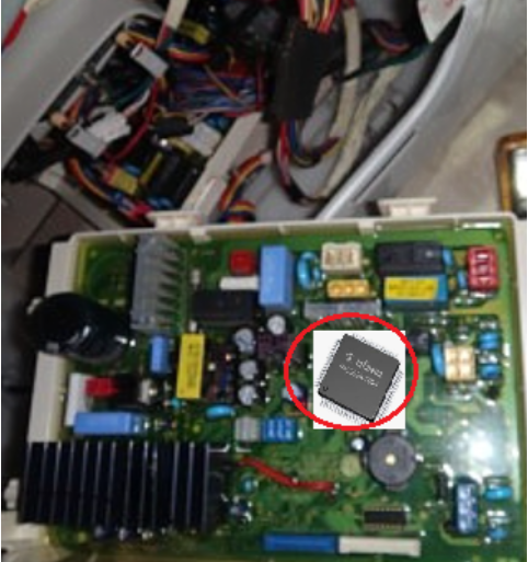 The SW that goes into the black MCU in the green ECU (Electric Control Board) shown below is used only to run the washing machine.