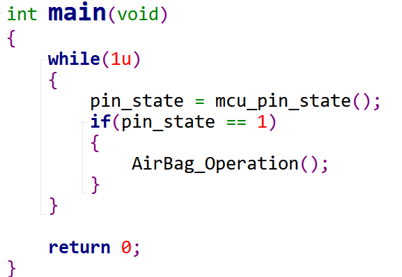 If the airbag is supposed to explode, the CPU has to constantly check the register of the corresponding port on that leg.