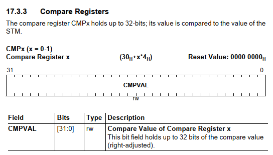 If that red color is the counter corresponding to 1 second, CMP has the value of the current STM Counter plus the number of counters corresponding to 1 second.