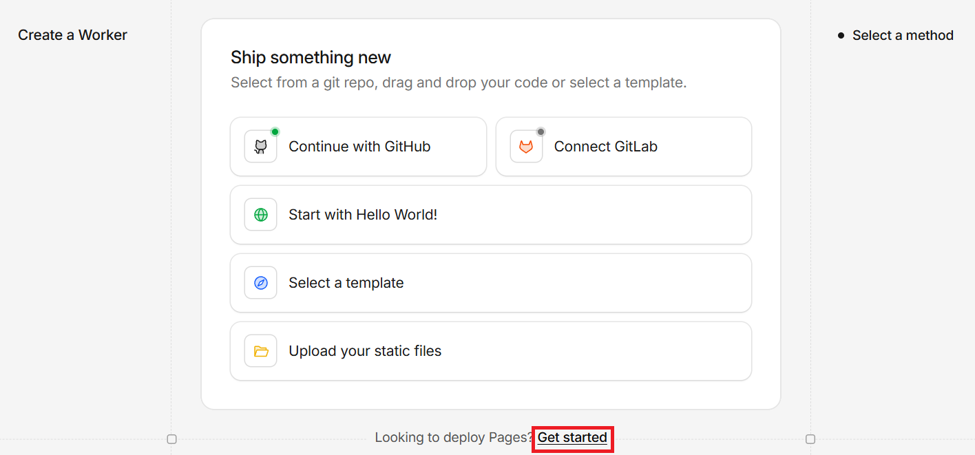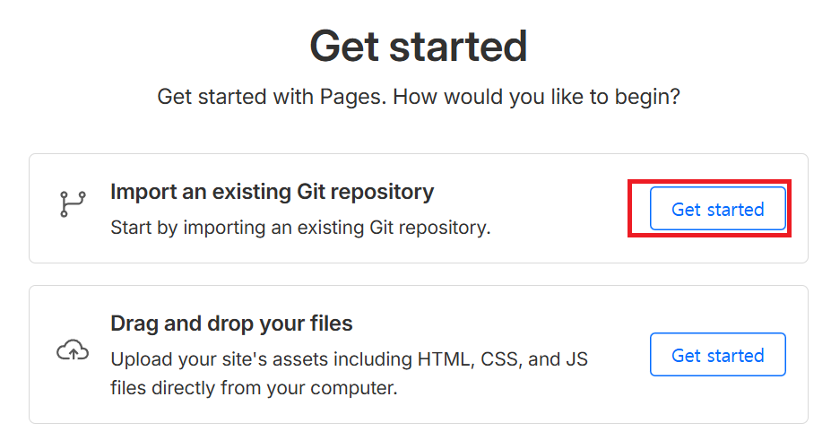 페이지를 시작하려면 "Get Started"를 선택해주세요.