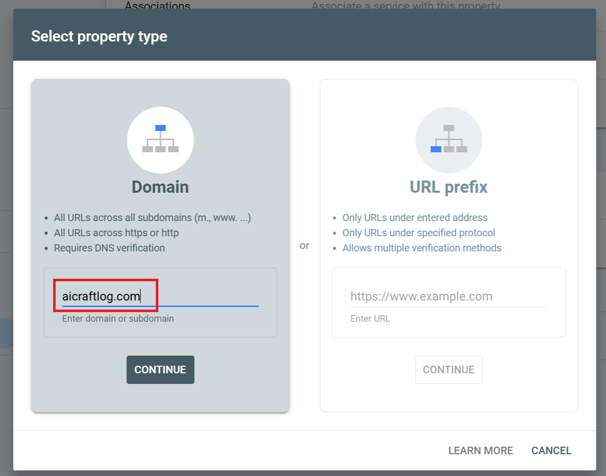aicraftlog.com(전체 도메인 등록, DNS 인증 필요) - URL 접두어 —
